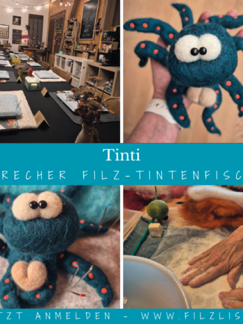 Schon lange hatte ich ihn im Kopf – jetzt ist es endlich so weit:Tinti, mein kleiner frecher Tintenfisch, hat seinen Weg in den Workshop gefunden.