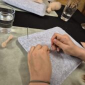Wir kombinieren Filz, Nägel und Holzstücke und experimentieren frei.