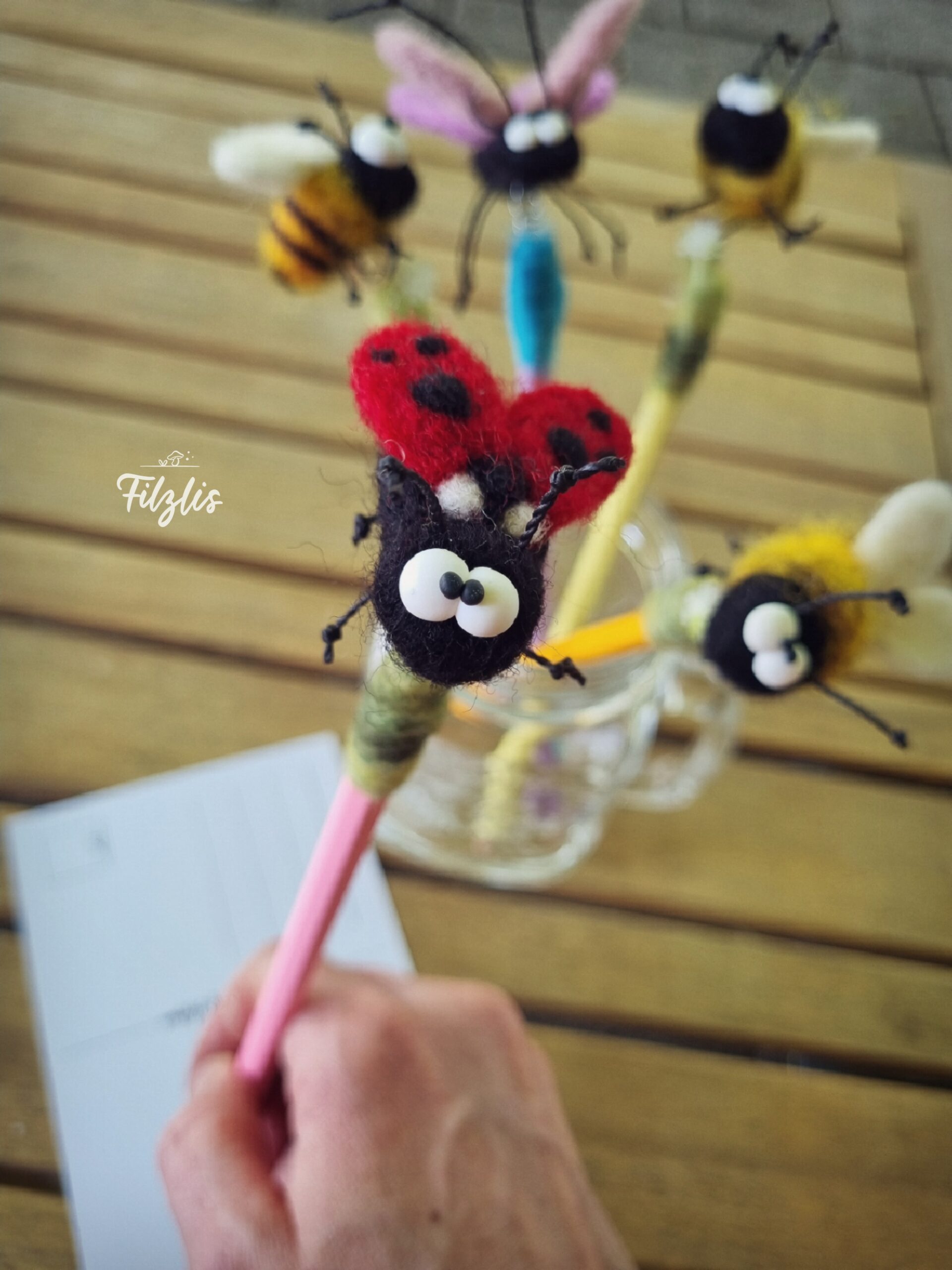 Für ein fröhliches Schreiberlebnis sorgt unser lustiger Wackelbleistift mit dem gefilzten Marienkäfer am Stiftende. Der Käfer wackelt fröhlich bei jedem Strich und bringt Freude in den Schreiballtag. Ein einzigartiges und spielerisches Accessoire für Kinder und Erwachsene.